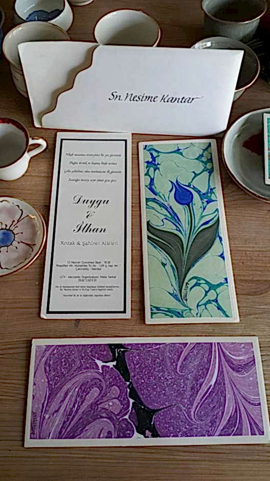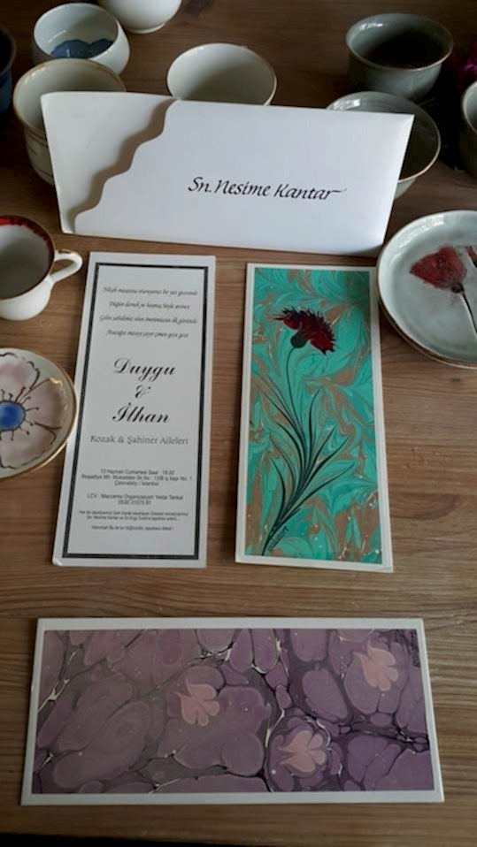 Sonsuza dek saklanacak sanat eseri davetiyeler� Ebru sanat�n�n do�as� gere�i her bir ebrunun tek tek haz�rlanmas� her bir davetiyenizin de tek olmas�n� sa�layacak.�
